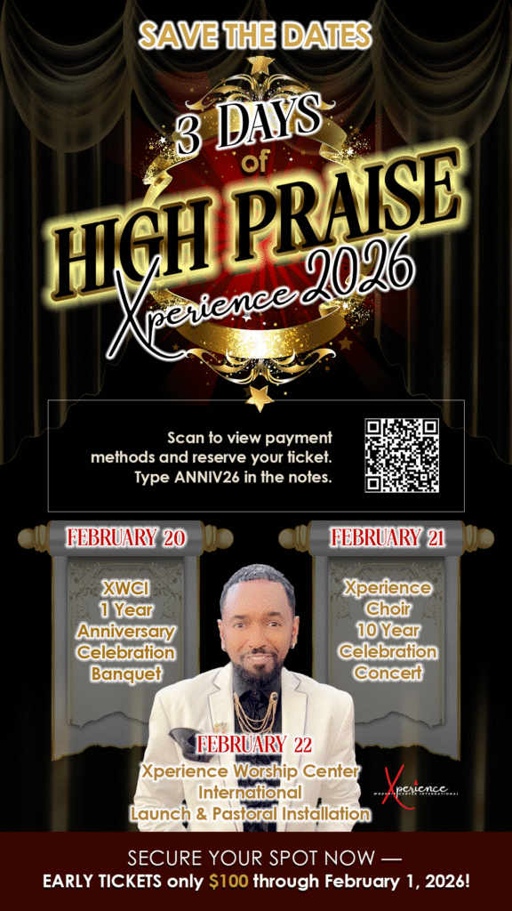 Join us for a 3‑Day Praise Xperience filled with celebration, worship, and gratitude as we reflect on God’s goodness and embrace what He is doing next.